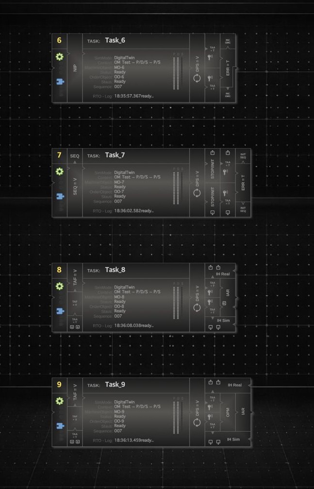 The same model is used for both simulation and execution, ensuring consistency between virtual and physical systems.